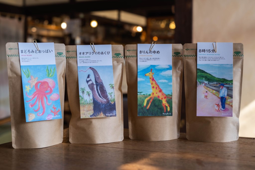きりんのゆめ:エチオピアブレンド。心地よい酸味と華やかな花のようなモカフレーバー。